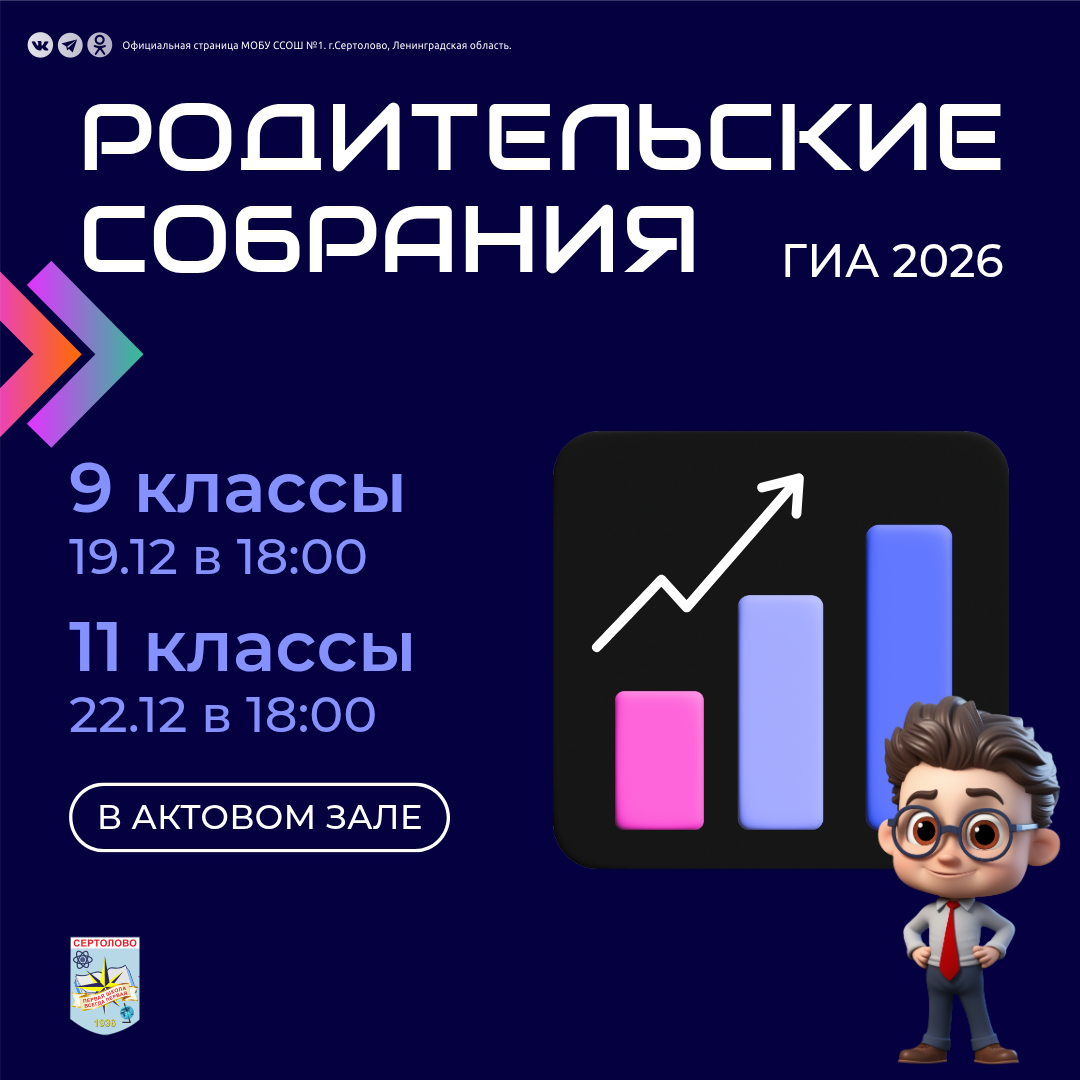 Приглашаем вас на родительские собрания, посвященные Государственной итоговой аттестации (ГИА), которые состоятся в Сертоловской СОШ № 1.