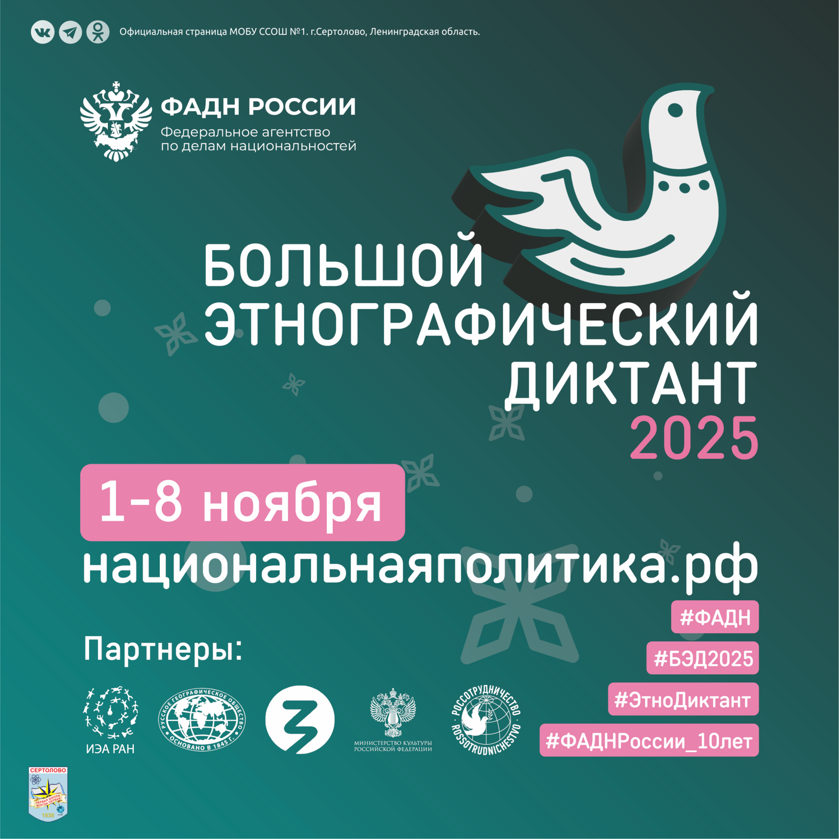 С 1 по 8 ноября 2025 года Федеральное агентство по делам национальностей совместно с партнёрами проводит X Всероссийскую просветительскую акцию «Большой этнографический диктант». Юбилейная, десятая по счёту акция направлена на укрепление общероссийской гражданской идентичности, популяризацию традиционных российских духовно-нравственных ценностей и борьбу с фальсификацией истории.